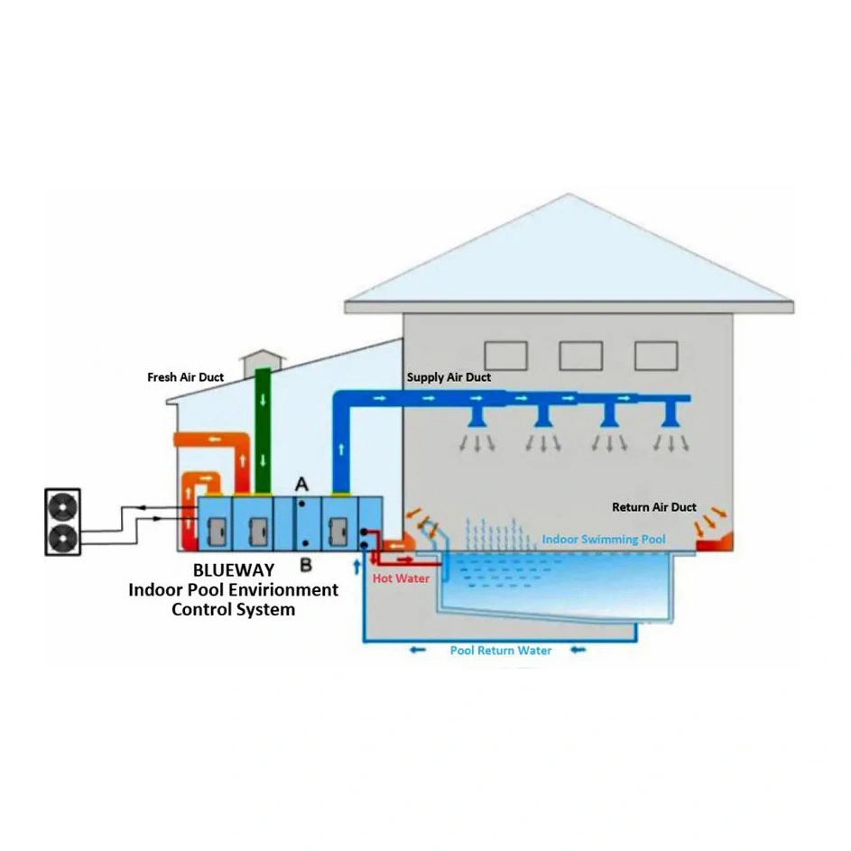 ●Laghdaíonn Fuinneamh Athchúrsáilte an gá atá le Téamh Breosla IontaiseÉilíonn linnte faoi dhíon go leor teasa chun compord spáis agus uisce a chothabháil. Seachas a bheith ag brath ar bhreosla iontaise mar phríomhfhoinse teasa, úsáideann Dehumidifiers Snámha Dhíon Ard-Acmhainne Blueway teas dramhaíola a ghintear le linn dí-humidiúcháin chun an t-aer agus an t-uisce linn a théamh. Tugann na haonaid seo i bhfad níos mó fuinnimh ar ais ná mar a ídíonn siad, le meánchoigilteas taifeadta idir 40% agus 60% i gcomparáid le gnáthchórais caolaithe aeir lasmuigh. I gcás gach cileavata de chumhacht leictreach a úsáidtear, seachadtar cúig chileavat teasa chuig aer agus uisce an natatorium. Déanann sé seo ár dí-humidifitheoirí linn snámha atá tíosach ar fhuinneamh mar rogha iontach do cheannaitheoirí éicea-chomhfhiosach atá ag lorg réitigh dehumidifier linn snámha saincheaptha ó mhonarcha iontaofa Síneach.